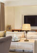 Materiał: metal, abażur-tkanina, kryształki,