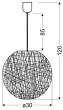 abażur w kształcie kuli wykonany z plecionego impregnowanego sznurka, usztywniany w złożonym procesie produkcji dla zachowania formy i odporności na zabrudzenia; zawieszony na standardowym plastikowym zawiesiu w kolorze białym; dostępny w dwóch rozmiarach