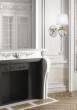 chromowa podstawa o oryginalnym kształcie i kunsztownym zdobieniu ramionka - metalową szarfą - w komplecie z białym kreszowanym abażurem; produkt idealny do wnętrz wymagających odświeżenia aranżacji;