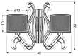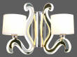 niezwykłe połączenie standardu z nowoczesnością; ponadczasowe białe płócienne abażury wykończone białą lamówką oraz designerskie ramionka z funkcją świecenia - w ramionkach za akrylową maskownicą schowany niewymienny LED o mocy 12,3W; zaświecanie LED i E14 odbywa się jednocześnie