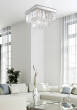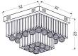 modernistyczny i niezwykle dekoracyjny plafon LED w formie kwadratu, dwa rodzaje akrylowych kryształków zawieszone na chromowanej podstawie, efektownie odbijają się w jej lustrzanej powierzchni; dedykowany do nowoczesnych wnętrz