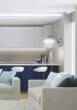 delikatna satyna w połączeniu z białym kloszem podkreśli sterylność wnętrza; finezyjna podstawa z ozdobnymi kulkami przy nadkloszówkach; źródło światła w zestawie; do kompletu zwis czteroramienny i lampka gabinetowa