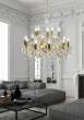 najbardziej dekoracyjny produkt w naszej ofercie; dostojny i wyszukany design; ekskluzywne połączenie metalu i tworzywa i kryształu; charakterystyczny powlekany profil ramionka; zawieszony na wytrzymałym łańcuchu umożliwiającym regulację wysokości; bogate zdobienia kryształowe; doskonałe do sal weselnych, bankietowych jak również prywatnych mieszkań urządzonych w klasycznym i efektownym stylu