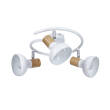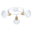 szykowne połączenie metalowego klosza z dekoracyjną nadkloszówką imitującą drewno; abażurki z możliwością regulacji kąta nachylenia połączone chromowym dystansem; metalowy abażur optycznie ocieplony drewnopodobną nadkloszówką; dostępne w dwóch kolorach