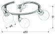 metalowa podstawa w kolorze satyny z nakładką z błyszczącego chromu + biały alabastrowy klosz; ruchome połączenie główek z podstawą umożliwia regulację położenia kloszy a tym samym kąta padania światła; źródło światła w zestawie; do kompletu: kinkiet, listwa 2 i 4 oraz plafon 3