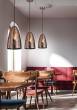 industrialna oprawa z metalowym kloszem i ażurowym dekorem; niesamowite efekty rozproszonego światła stworzone przez drobne otworki, doskonale rozświetlą również wnętrza orientalne; regulacja wysokości poprzez skrócenie zawiesia zapewni optymalne dopasowanie do oświetlanych wnętrz