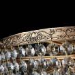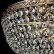 Rama metalowa, wykończona mosiądzem. Kryształy o różnych rozmiarach i kształtach.
