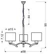 chromowa podstawa o wyszukanym kształcie w połączeniu z estetycznym abażurem tasiemkowym w kolorze kremowym; idealny do klasycznych wnętrz z tradycyjnym wystrojem; do kompletu kinkiet, zwis 5-cio ramienny; dostępny również w wersji z czarnymi abażurami