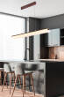 Produkt z ekskluzywnej linii marki APETI. Lampa wisząca bardzo nowoczesna, w swojej prostocie nada wnętrzu nowoczesnego designu. Brązowy metal łączy po dwóch stronach ekonomiczny led, dając przy tym dużo światła. Zawieszona na metalowych linkach którymi można regulować wysokość lampy.