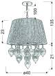 Materiał: metal, abażur-tkanina, szklane bombki,