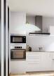 biały klosz ze szkła giętego, idealnie gładki, bez wzoru, matowy po stronie zewnętrznej; złożony proces produkcji: piaskowanie, polerowanie i malowanie; eleganckie zawiesie na stalowej lince z transparentnym przewodem i dekoracyjną metalową nadkloszówką w wykończeniu mosiężnym