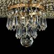 Rama metalowa, wykończona mosiądzem. Kryształy o różnych rozmiarach i kształtach.