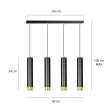 Emibig KIBO 4 BL/GOLD 644/4 lampa wisząca nowoczesna metalowa czarne tuby złote dodatki 4x30W Gu-10 60cm