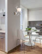 niezwykłe połączenie standardu z nowoczesnością; ponadczasowe białe płócienne abażury wykończone białą lamówką oraz designerskie ramionka z funkcją świecenia - w ramionkach za akrylową maskownicą schowany niewymienny LED o mocy 12,3W; zaświecanie LED i E14 odbywa się jednocześnie