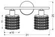 produkt ponadczasowy; szyku dodają ozdobne kryształki (tu czarne) połyskujące w padającym na nie świetle i odbijające się w lustrzanej powierzchni chromowej podstawy; do kompletu: kinkiet, spot, plafon 3, zwis 1, 3 i 5 oraz lampka gabinetowa; dostępny również w wersji dwukolorowej z kryształkami transparentnymi i czarnymi