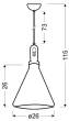 nowoczesna oprawa z metalowym kloszem; nadkloszówka imitująca drewno w połaczeniu z białą kolorystyką klosza i żywą czerwienią zawiesia podkreśla nieskazitelność całości; idealna do wielu pomieszczeń