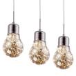 Znakiem rozpoznawczym wiszącej lampy sufitowej Bulb 136 są 3 oryginalnie stylizowane oprawy. W każdej z nich zamontowano wymienny moduł LED o łącznej mocy 15 W, które odpowiadają 93 W tradycyjnej żarówki. Co istotne, wykorzystanie modułu LED pozwala zmniejszyć koszty zużycia energii, nie wpływając na jakość źródła światła. Ponadto, wysokość każdej z opraw można dowolnie regulować do 100 cm. To praktycznie i łatwe w obsłudze rozwiązanie umożliwia tworzenie indywidualnych aranżacji oraz dopasowanie lampy do dowolnej wysokości pomieszczenia. Prezentowana lampa ma charakterystyczną, unikalną stylistykę. Oryginalne 3 klosze z dymionego szkła mają formę dekoracyjnej żarówki. Niesamowitego efektu całości dodają zamieszczone w kloszu metalowe pręciki, które nabierają jeszcze większego uroku po włączeniu światła. Lampa będzie idealnym dopełnieniem wnętrz nowoczesnych, minimalistycznych oraz vintage.